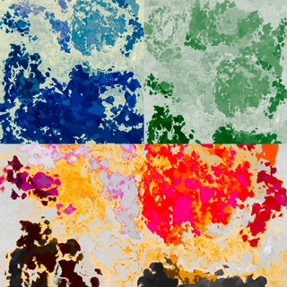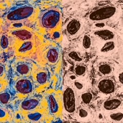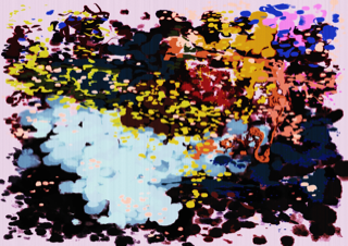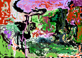 Pencil and ink on paper with jpeg image distortion and digital printing / Acrylic and Gouache on canvas