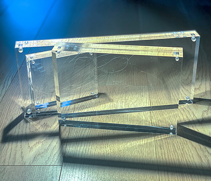 multicoloured natural hair, transparent frames