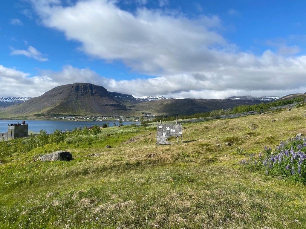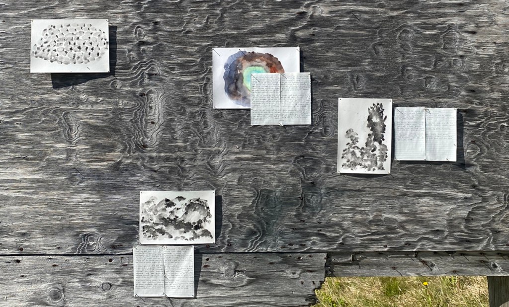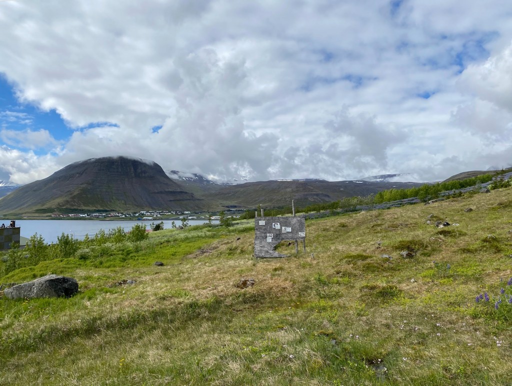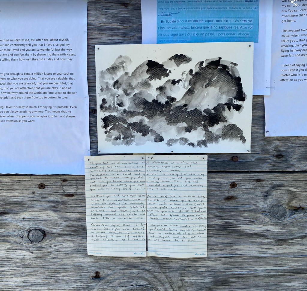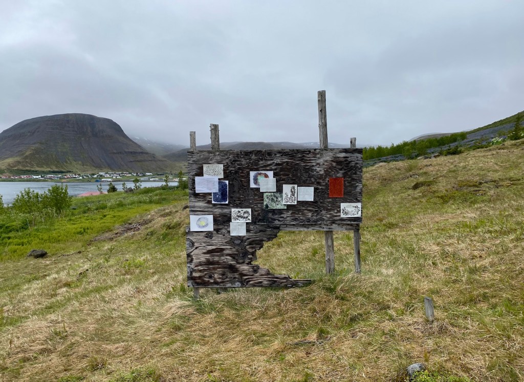 The work consists of printed images of auto-translation with corrections by the people along with handwritten original text in Korean, translated text in English, and Icelandic text (translated by Elísabet Gunnarsdóttir), which are in pencil on weatherproof papers. Small watercolour drawings depicting colour and details from the nature of Ísafjörður also added in between the texts.