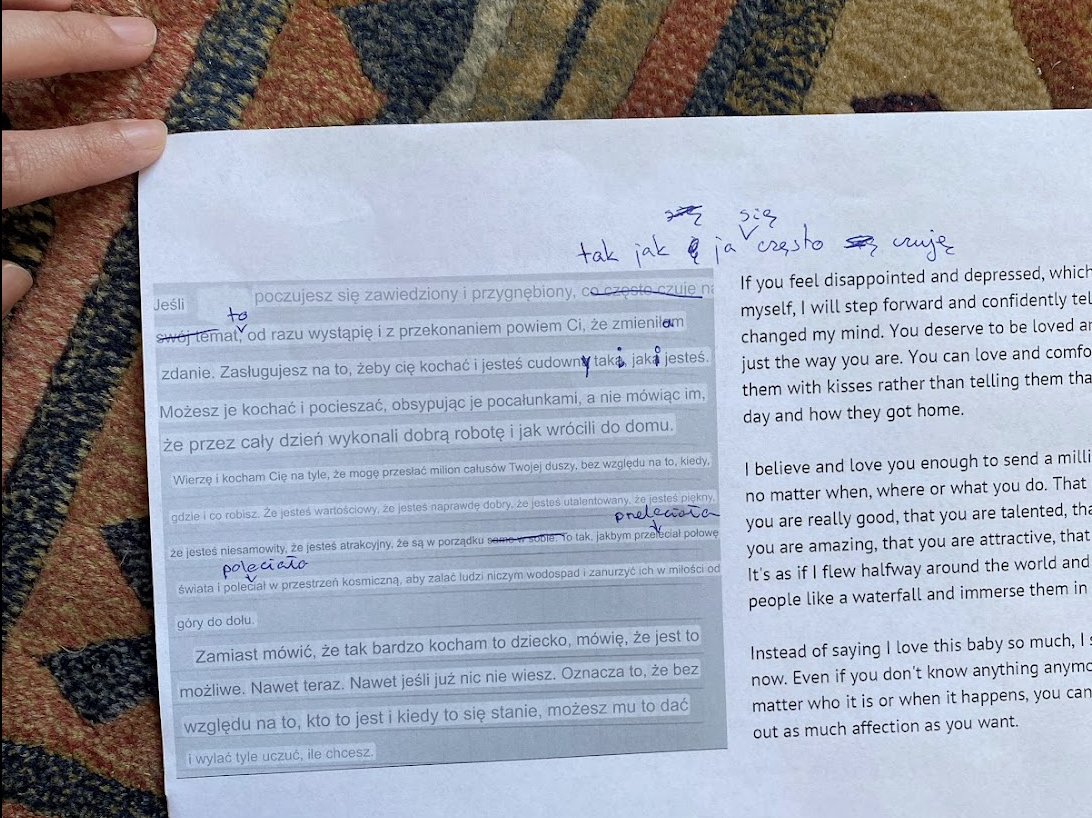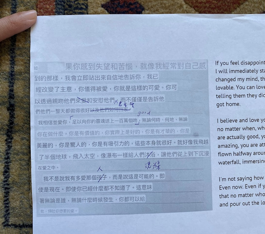There is an original text extracted from a diary written about a loving memory that is wistful and has a longing for something that has gone. Using auto-translation by Google (operated on 1 Jun 2024, and 12 Jun 2024), I translated those words into Arabic, Catalan, Chinese, Greek, Polish, Thai, and Icelandic, and then re-translated it into English. Each result produced small differences and misinterpretations. But it still holds the original emotions and a message.